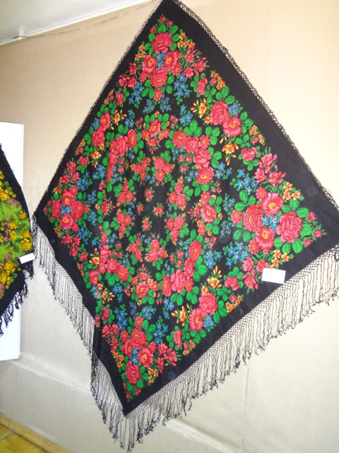 Как и обещала ранее, размещаю в этой теме свои фотографии с выставки. Заранее предупреждаю и приношу извинения за то, что цвета шалей, платков и, возможно, картин, искажены. Условия съемки не позволяли сделать фотографии более качественными, хотя об искаженной цветопередаче я узнала только дома при просмотре фоторгафий. Очень расстроилась этим фактом.
