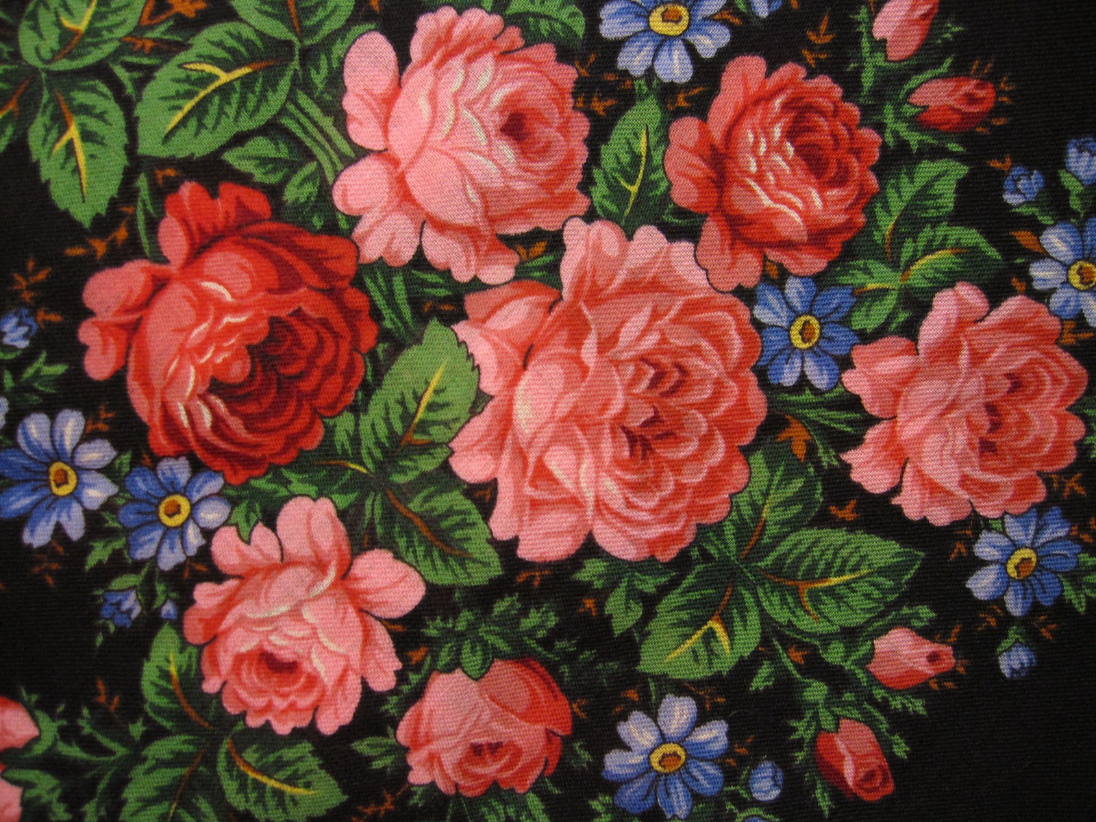 Очень точно прорисованы розочки, а какие прекрасные бутоны, милые голубые ромашки. На черном фоне все это замечательно смотрится!