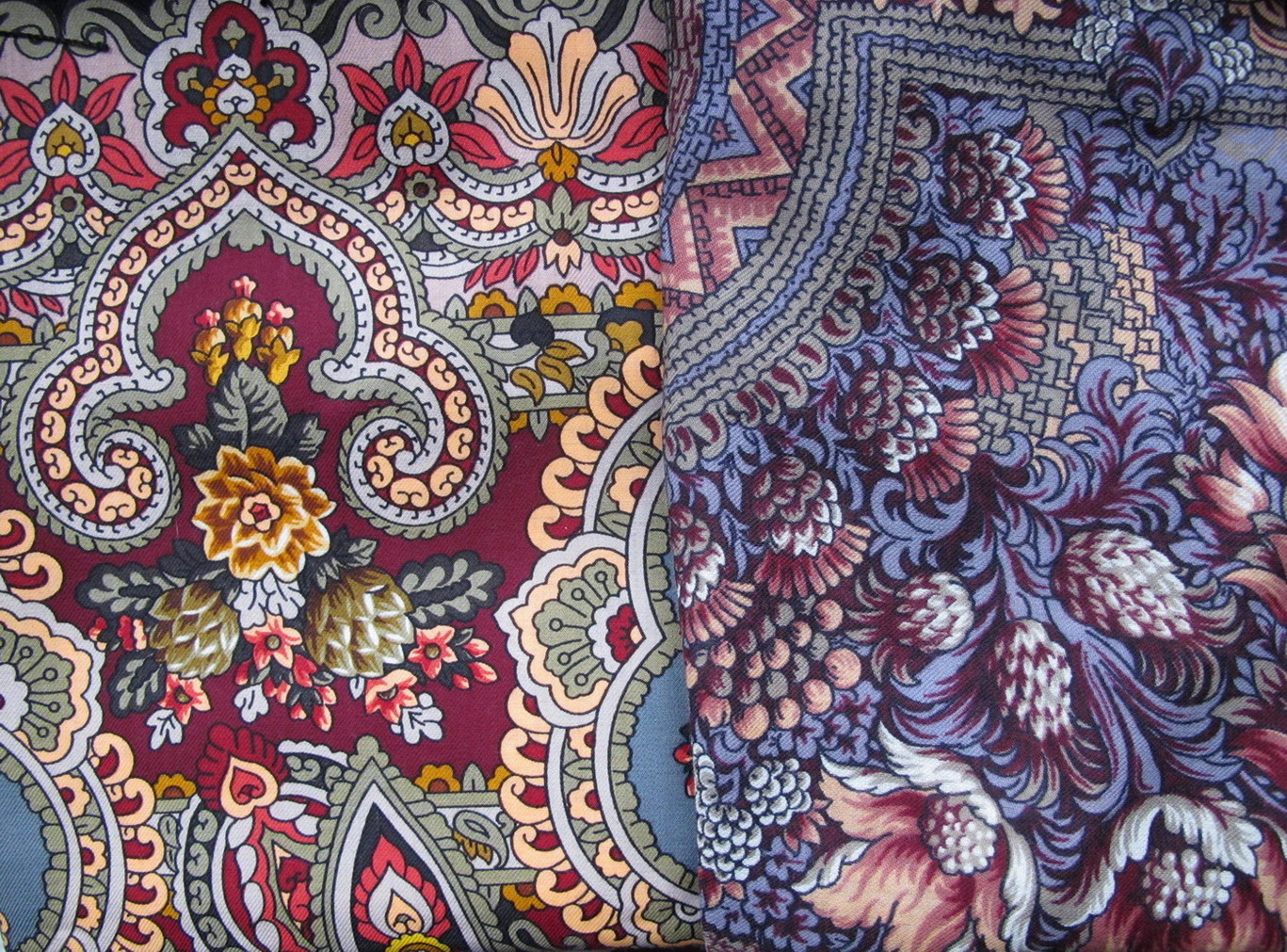Раньше не обращала внимания, как много общего у этих платков, хотя весовая категория разная. И насколько заметно, что один и тот же автор.