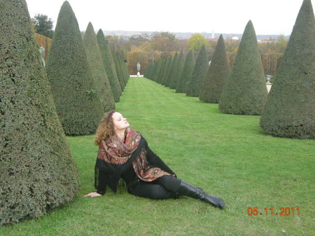 У Вас тоже хорошо смотрятся шали вживую. Особенно на фоне Версальского парка и шато.