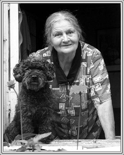 Чарик «незаметно» перебирает лапами, по-пластунски подбираясь к Злате Александровне поближе. Говорить, что он подхалимски ловит каждое слово хозяйки, было бы несправедливо. Их взаимоотношения определяются, скорее, словом «привязанность», когда одна живая душа истончается без другой, когда есть один мотив на двоих, и врозь им никак нельзя. Маленький друг готов на все для своей Златы: и прыгать позади дома с цирковой легкостью через обруч, и лапу давать, и самопожертвованно охранять немудреное хозяйство. Ольшевская с нескрываемой гордостью демонстрирует способности собаки.