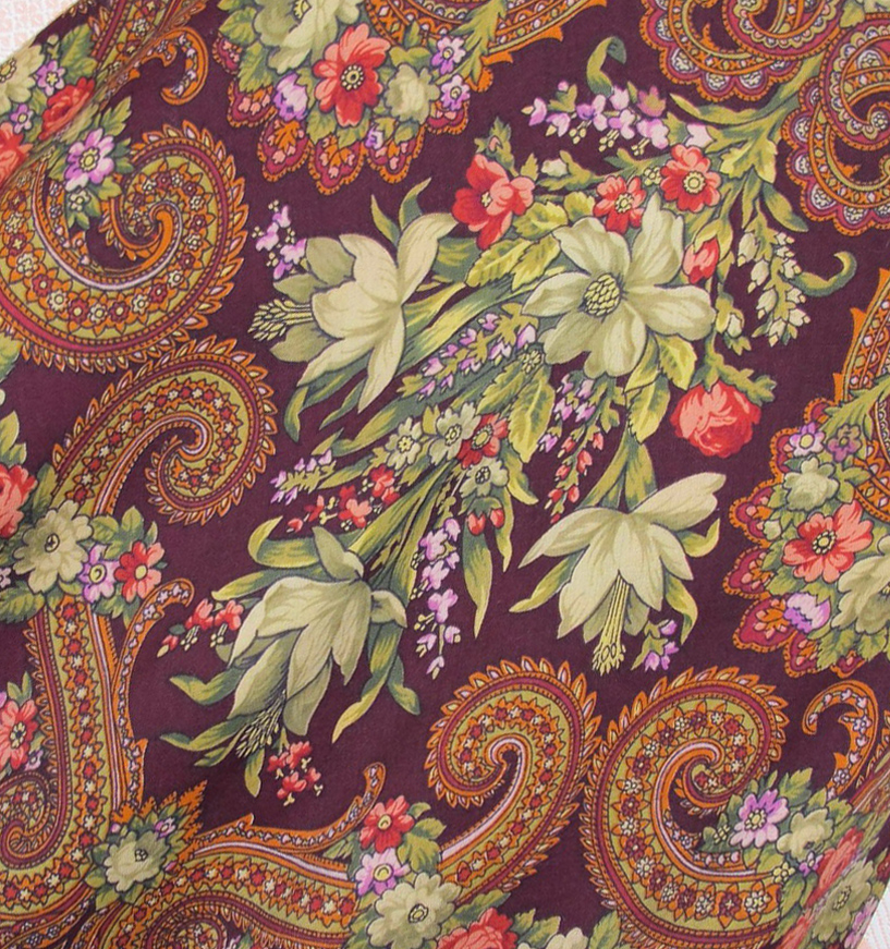 tugrik, а у меня есть подделка под такой платок. Колорит такой же, но ткань с люрексом и край осыпка. не ношу, но цветность нравится.