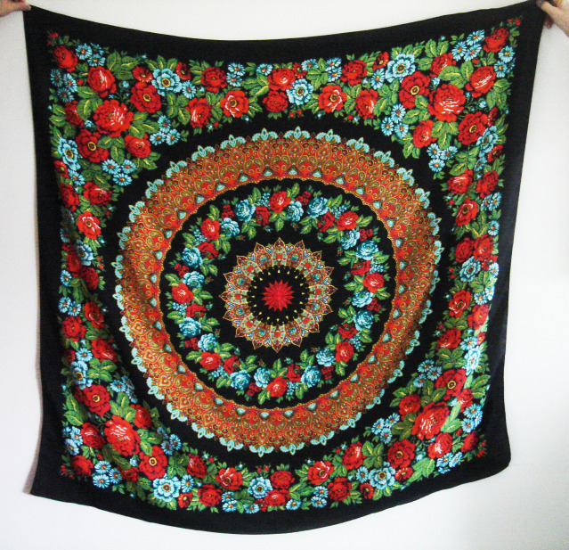 tugrik, а у меня есть подделка под такой платок. Колорит такой же, но ткань с люрексом и край осыпка. не ношу, но цветность нравится.