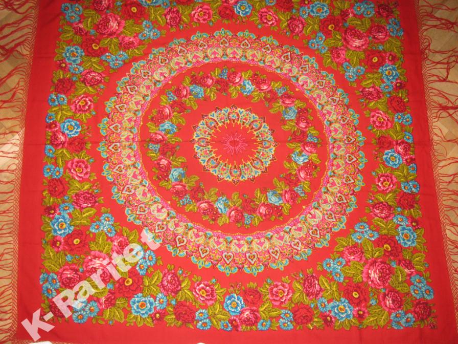 "В ОРИГИНАЛЕ ШАЛЬ ТЕМНЕЕ,ВСПЫШКА ДЕЛАЕТ ЦВЕТА СВЕТЛЕЕ! 1.5x1.5м.НЕ РЕПЛИКА-ОРИГИНАЛ! Кисти чистошерстянные,на 10% немного пострадали. Сама шаль в идеальном сост.,моль не ела,цвета сохранены на 100%"
