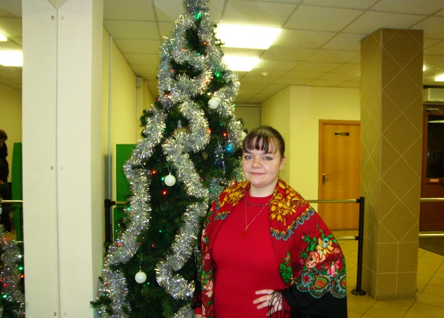 Добавлю фото возле нашей институтской елочки. На мне красные Белые розы, колорит которых не знаю.