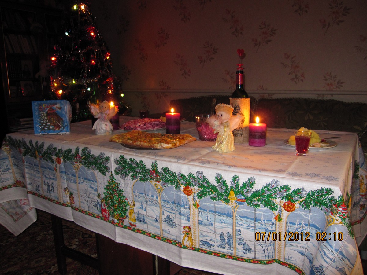 Как и обещала - рождественские скатерти. Я их приобрела две - большую и маленькую Большую стелим непосредственно на праздник. А маленькая лежит на кухонном столе постоянно в новогодне-рождественский период. ^^ ^^ ^^
