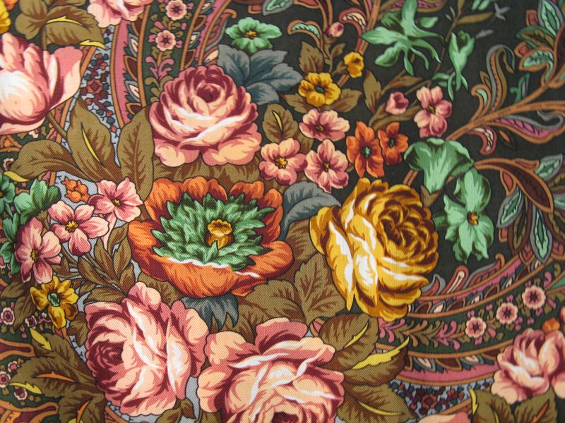 Очень хочется показать Вам платочек, который меня приятно удивил. Он в реальности оказался намоного ярче и привлекательнее, чем на картинке в каталоге. Это "Заповедный уголок" из Распродажи. Изначально я предполагала купить зелёный, по примерила - и "не показался". А тут - воплощённая "Песнь осеннего плодородия". Дома потом экспериментировала, раскидывая на нём яблоки и кукурузу. Всё хорошо смотрелось!