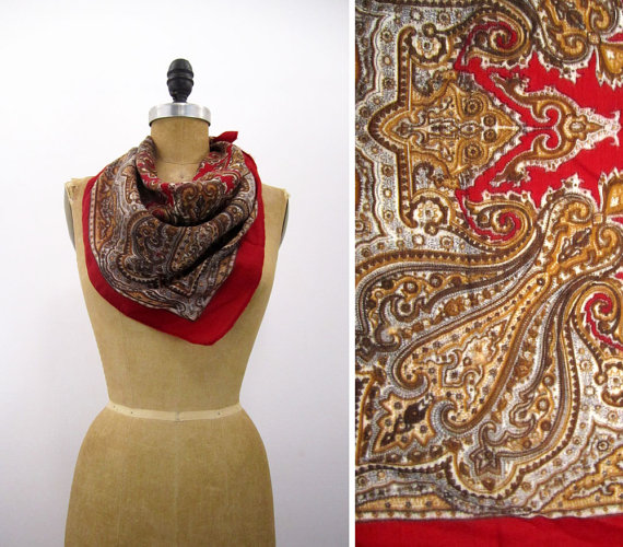 Там, где оранжевый и красный платки - оранжевый не знаю, но фото его иногда попадаются, а красный - это Табаяные листья Клары Зиновьевой.