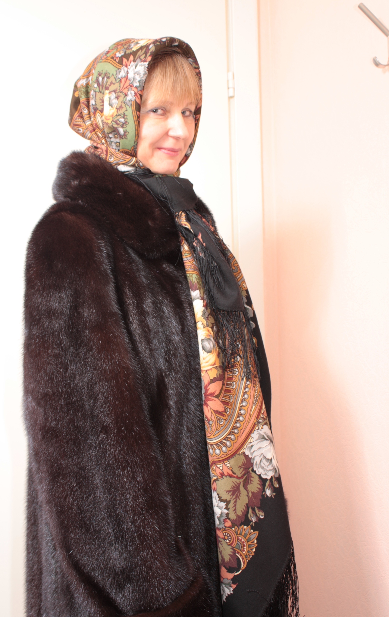 И сегодня решила, что пора переходить на шубу. Платок на голове Галина, передний хвост шали, как рекомендовала argon, поверх шубы.