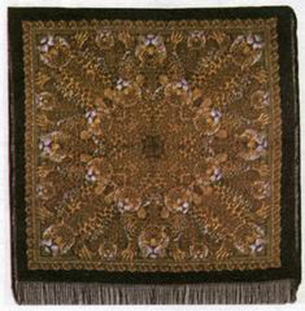 Было бы интересно узнать название и автора моей шали. Куплена была в конце 89-90 гг. Размер 150х150, бахрома шерстяная, вязанная в 3 ряда (по-моему, самый лучший вариант, ни шелковая, ни современная шерстяная не сравнятся с ней по элегантности и удобству, имхо).