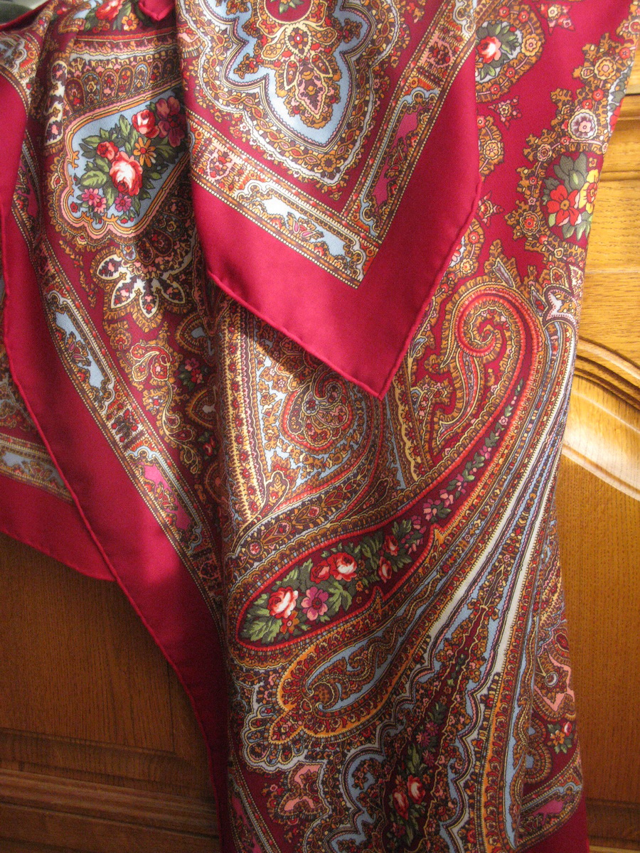 Tapya S, будьте осторожны с осыпкой, вначале проверьте направление нитей по всем четырем сторонам платка. Я испортила свой бордовой "Ларец самоцветный", поспешила, понадеялась наавось - рисунок оказался под большим углом к долевой и поперечной нитям, вначале бахрома начинается 0,5 см, а в конце уже 5,0 см. Буду обматывать вокруг шеи, чтоб не видно было. Но вещь испорчена безвозвратно.