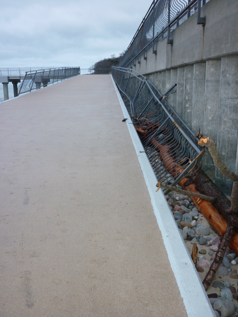 И то, что мы увидели- привело нас в шок. Море, т.е. волны, действительно были огроменными, захлестнули променад и были на территории "святая святых", принеся с собой все соответствующее- ветки, камни, мусор, разрушение....