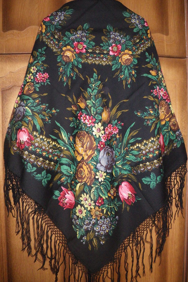 А девушка в платке, похожем на тот, что наша Tig-rik "добыла", там черные розы были и совершенно фантастические тюльпаны.