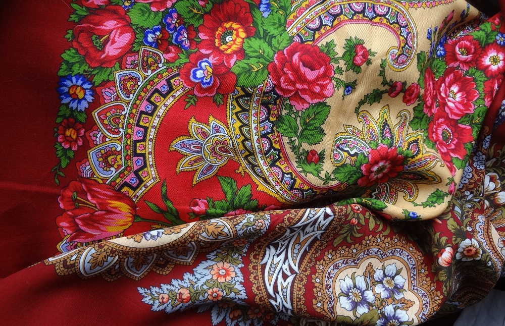 Синяя Птица, очень понравился тон бежевого на платке "Над серебряной водой", в сочетании с красным очень красиво!