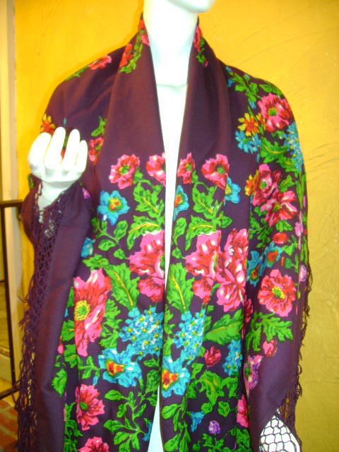 У меня в точности такой же, только черный. Это японский, 132х132см, без бахромы. Действительно, середины 70-х: в то время дарился родителями моей бабушке. Стоил, кстати, 65 руб.
