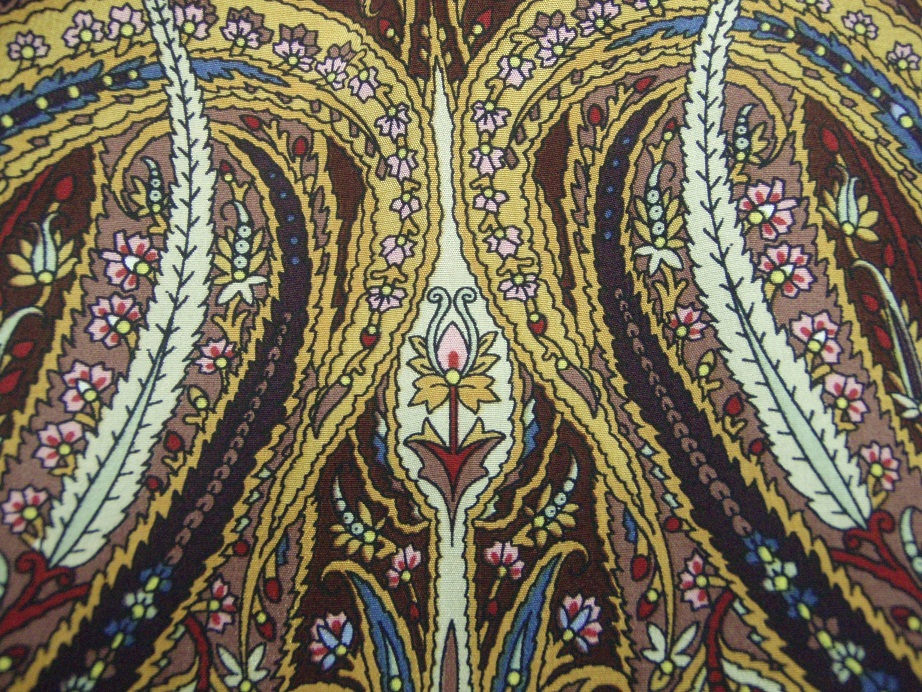 ...(вот и мне сразу почему-то "увиделось", что эта шаль - очень достойно выглядит...).И ещё "троечка фрагментов" - фото без вспышки добавляет "желтизны"...но, уж как получилось. Мне во время примерки больше всего понравился вариант не "углом-бородой", а неширокой косой полосой (из-за мягкости ткани - масса вариантов может быть). Желтоватые "прутики" должны очень приятно выглядеть в осеннем пейзаже, а на весеннем солнце - жизнерадостно
