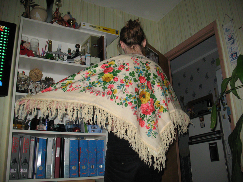 У меня есть "Русская красавица" с изумрудными розами. Постараюсь сфотографировать поскорее. Платок не новый, был отдан мне подругой, знающей, что я платки и шали люблю и активно ношу. Ко мне платок попал с уже слипшейся и несимпатично выглядящей шерстяной бахромой. Вот как раз подумываю, не реанимировать ли бахрому...