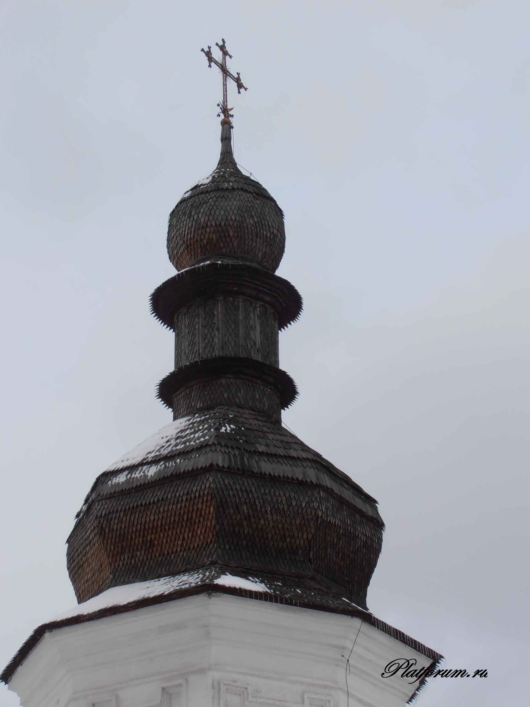 В это раз скамейку заменил фонарный столб)). Фото сделано напротив храма Иоанна Богослова. Очень старинная церковь. Обратите внимание на купол, вся крыша и купол выложены деревянной черепицей.