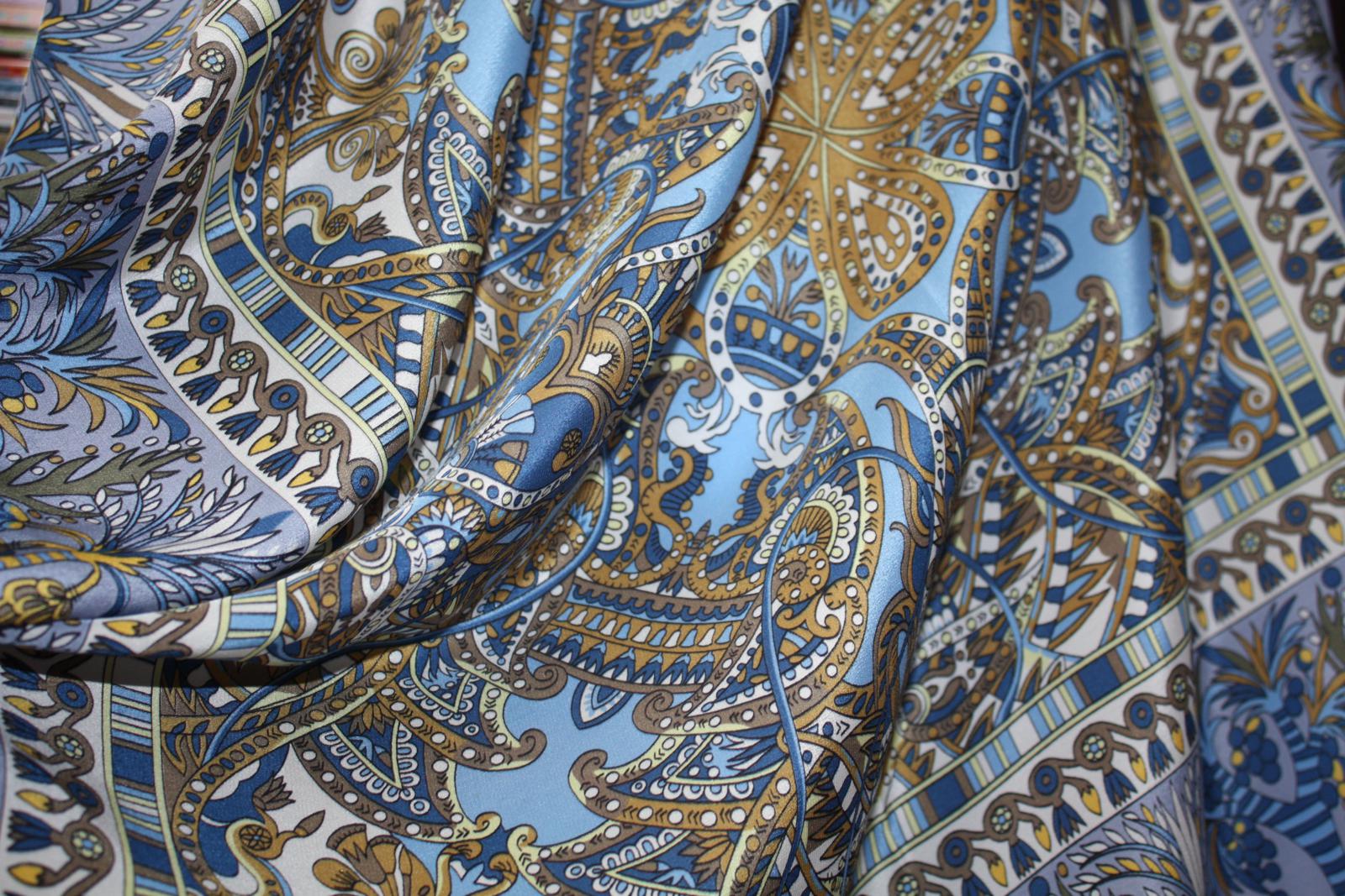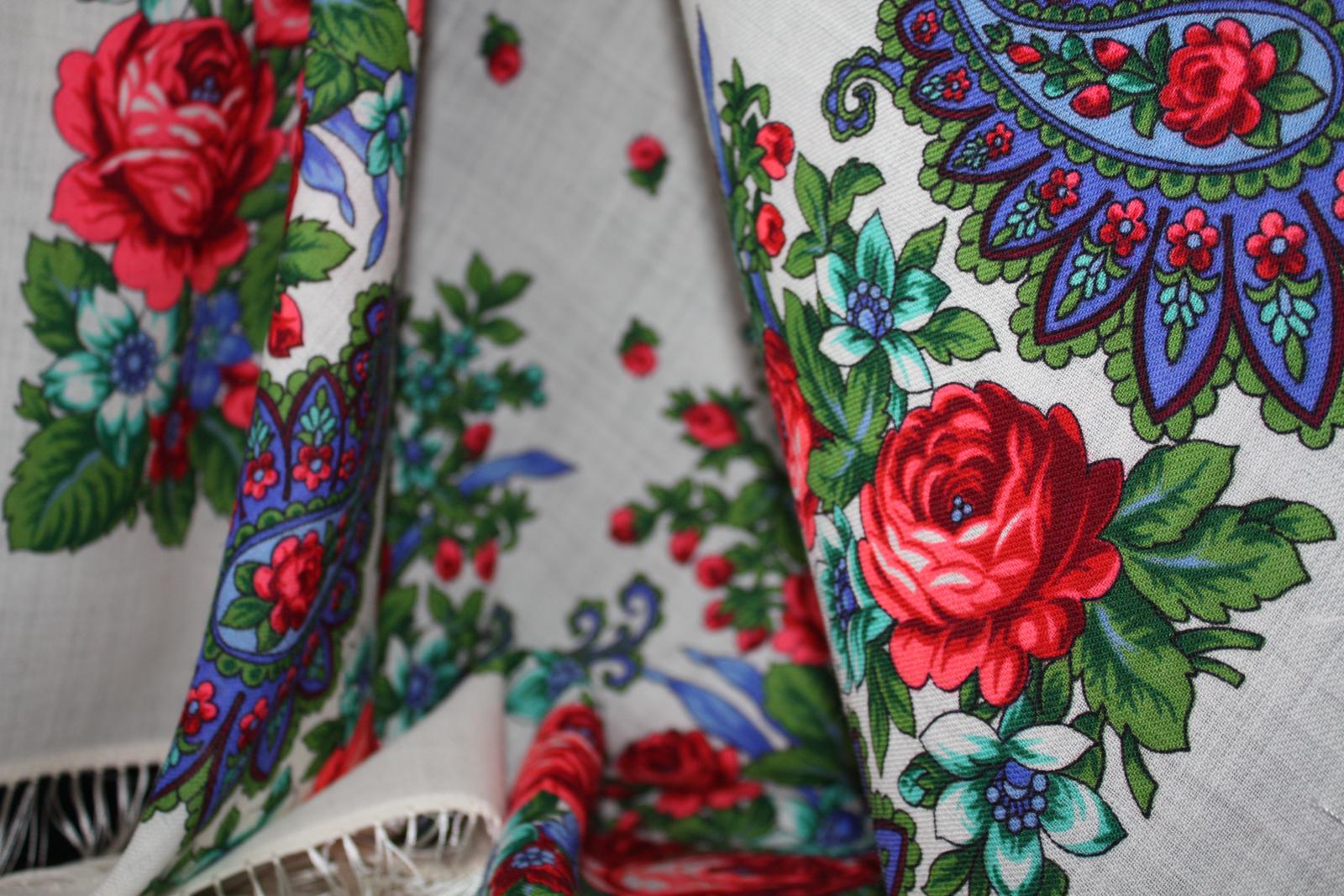 Появился у нас вот такой шёлковый платочек Натальи Белокур - первый современный шелковый платок, выпущенный мануфактурой в 1998 году. Года два назад его ещё можно было купить довольно свободно.