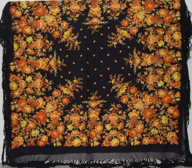 Шаль с традиционным цветочным мотивом "кайма из роз"