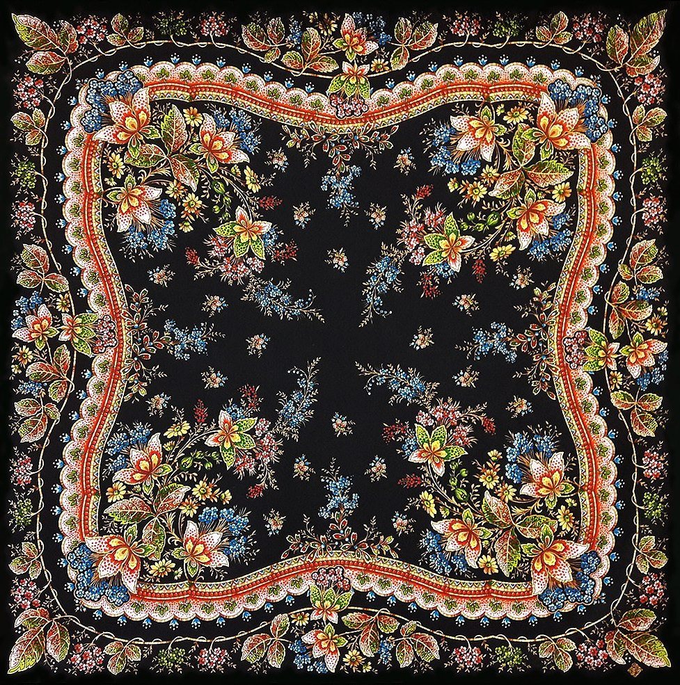 LadyWinter писал(а):mila, скажите, пожалуйста, "Павловские розы" и "Варенька" были созданы Кларой Сергеевной одними из последних? Их роскошные розы отличаются от цветов на более ранних шалях и платках. Там розы трактованы более лаконично, не так пышно, мне кажется.