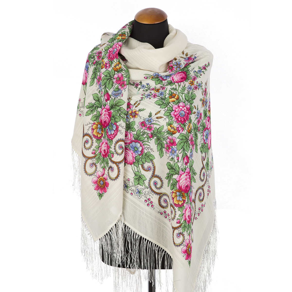 1561. УТРЕННЕЕ СИЯНИЕ (другой рисунок с аналогичным названием ранее выпускался ППМ). Автор Ирина Дадонова. Шерстяной платок 146х146 на ткани с просновками. Выпуск 2014г.