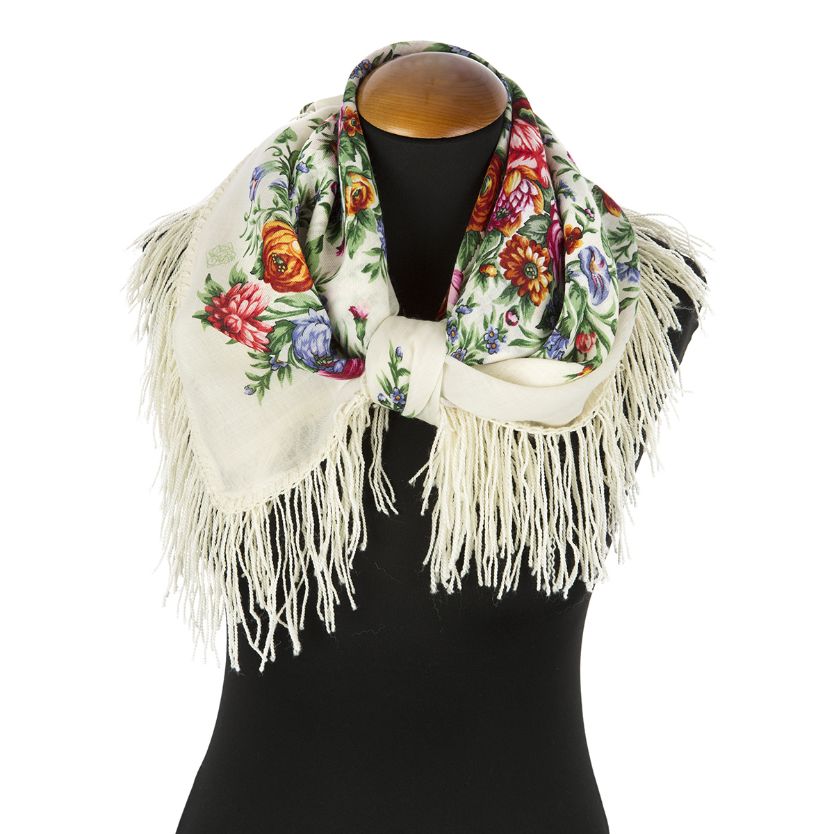 Сначала выпускался с простой шерстяной бахромой, позже с простой вискозной.
