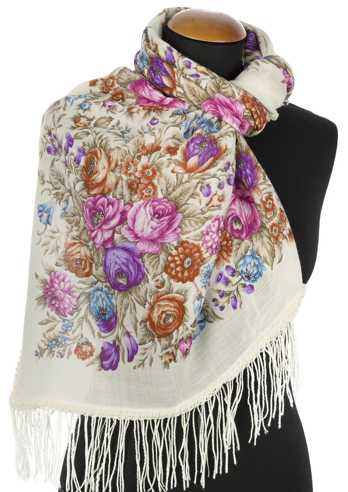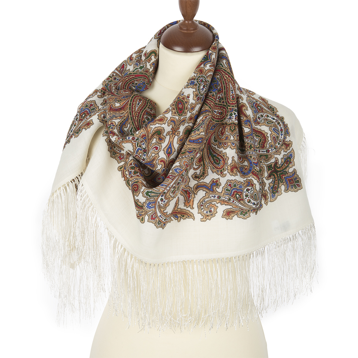 Сначала выпускался с простой шерстяной бахромой, позже с простой вискозной.