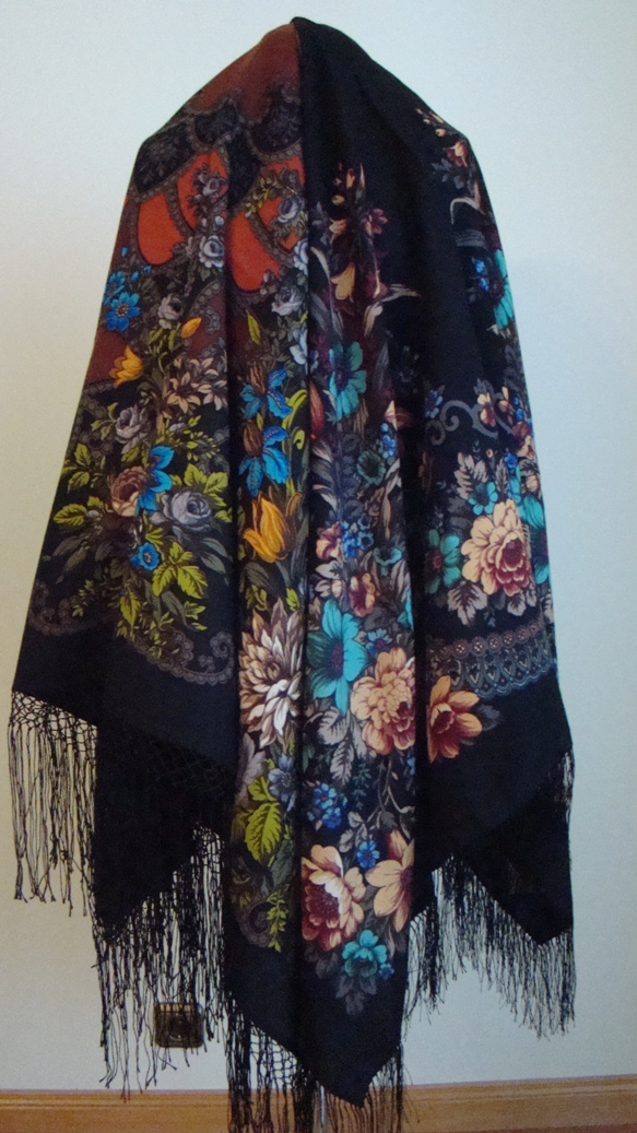 Показалось интересным сравнить этот платок с голубым палантином.