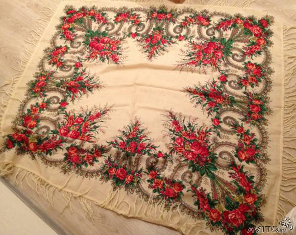 В нашем каталоге он находится в Бабушкином сундуке как платочек 82х82 см №6 "бордовый с загогулинами".