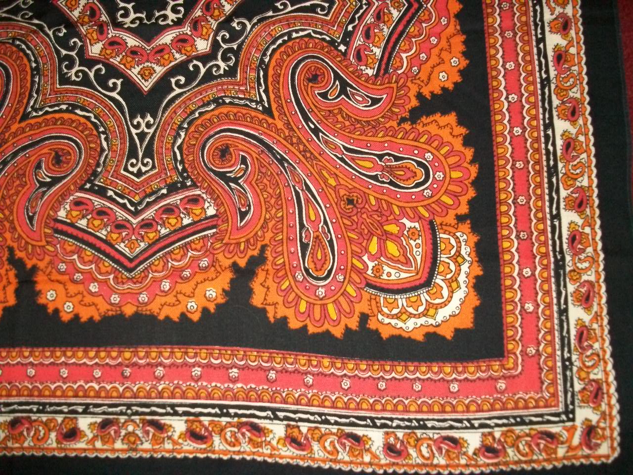 Платок долго лежал в шкафу (не у меня), но какой год выпуска неизвестно. Краски яркие. Размер 84х84. Оверлок.
