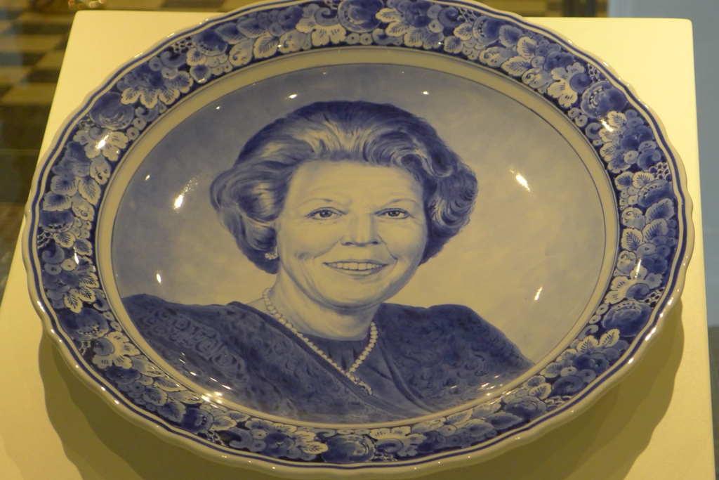 Далее музей мануфактуры. Правящая династия Нидерландов - Оранские-Нассау пользуются любовью и уважением подданых. Естественно, не остается в стороне и фабрика, которая все заметные события в жизни королевского дома - дни рождения, помолвки, свадьбы, рождения-крестины и т.п.- отмечает выпуском памятных тарелок. Такие тарелки выпускаются ограниченным тиражом и по традиции первый подписанный экземпляр преподносится членам королевской фамилии. Этим вещам отведен отдельный зал в музее.