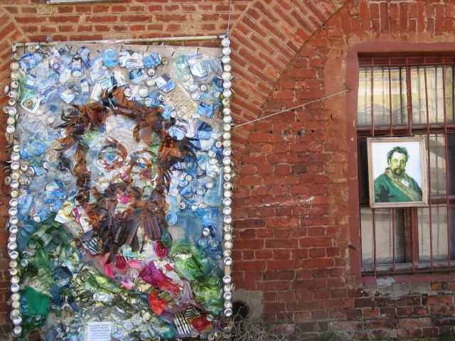 Возле городского музея - инстоляция из мусора. Если не ошибаюсь,работы московских художничков.