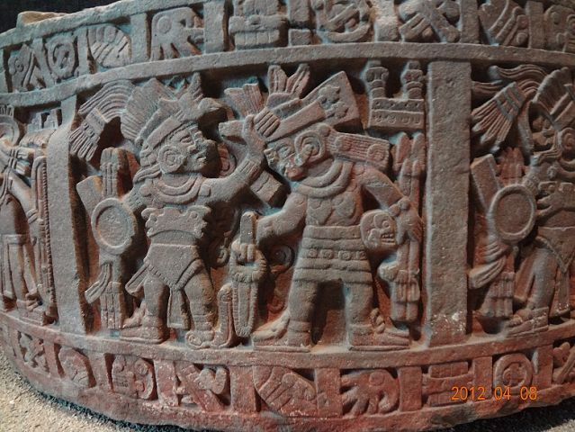 Так называемый "Камень Солнца" ацтеков. Возможно жертвенник, а возможно ристалище для смертельных боёв (экскурсоводы очень "аккуратно" обращаются с терминами...поскольку абсолютной уверенности в назначении некоторых "объектов" нет...или мнения расходятся...в ходу термины "так называемый", "по всей вероятности"...)