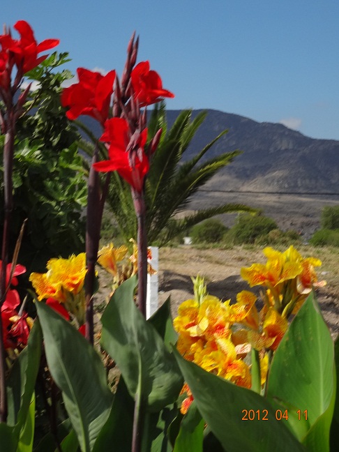 Вдумчивый интернет "сказал" , что "О́гненное де́рево, или Дело́никс короле́вский (лат. Delonix regia) — дерево родом с Мадагаскара семейства Бобовые (Fabaceae) подсемейства Цезальпиниевые (Caesalpinioideae). Высота растения достигает 10 метров.Диаметр цветков около 10 см". В цветении - очень красиво, а цветки чем-то напоминают гибискус. Про жёлто-красные канны (на фото, видимо - они...) моя приятельница из Кемерова сказала "так вот как выглядят в естественной среде те цветы, которые высаживают в нашем городе у памятника Ленину!!???