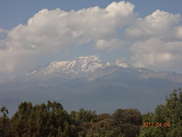Вдали в дымке вырисовывается вулкан Попокатепетль. Всегда в дымке - ибо всегда "дышит", "бурлит". Совсем недавно были сообщения о том, что людей, живущих у подножия вулкана - эвакуируют...утихло, люди снова вернулись..обычное, говорят, дело....