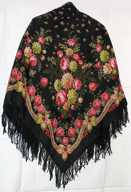 Читала в журнале интервью с Вячеславом Зайцевым. Так вот он рассказывал, что западные модельеры считают традиционным русским рисунком (Traditional Russian Print) на платках именно "фуксиновые розы на черном".mariko писал(а):А традиционные - это непременно яркие цветы? и на чёрном?