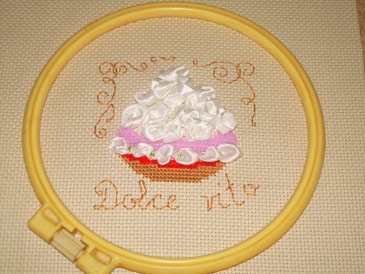"Отдыхалочка" на один вечер.Крестик,бисер,ленты и получается объемное пирожное.Надо будет сделать всю серию.