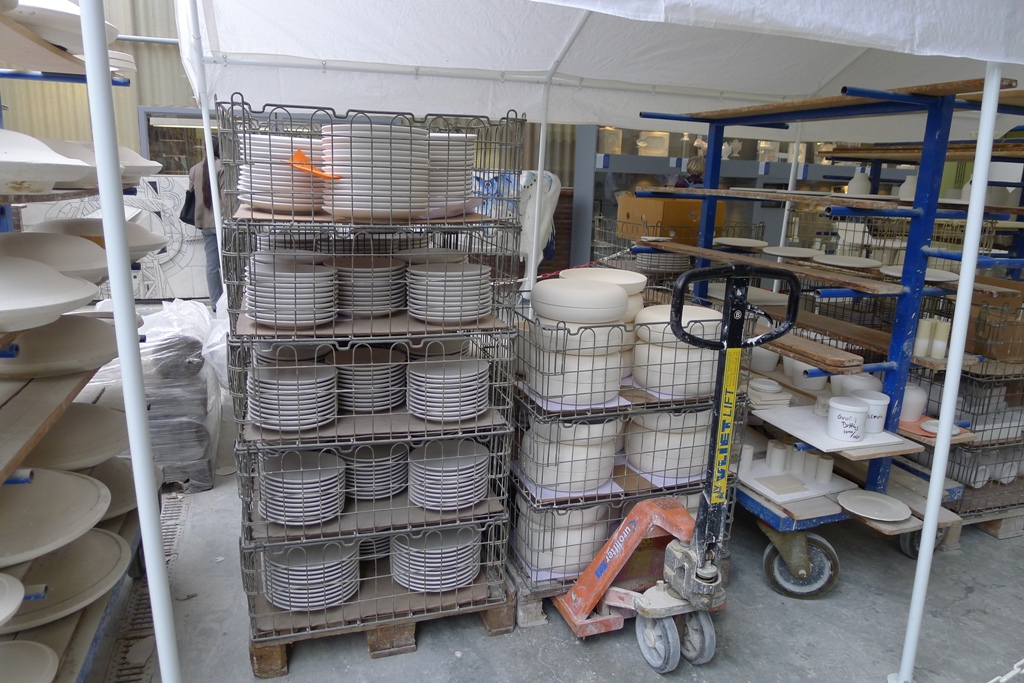 На фабрике всех желающих, и группы, и одиночек, пускают в цеха, где производят заготовки из фарфора. Правда, ходить, где вздумается, нельзя, а только по выделенным для этого проходам по середине залов.