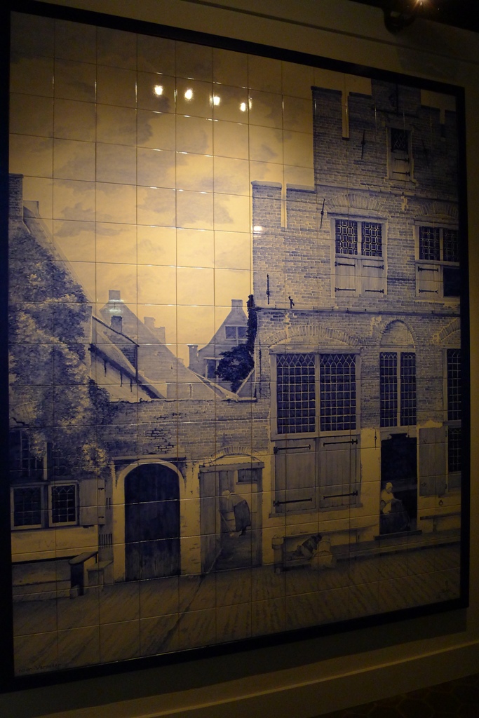 А это копия знаменитой картины Рембранта «Ночной дозор», занимающая целую стену зала. Два художника работали над картиной из 480 плиток размером 18х18 см больше года -с мая 1999 г. (год Рембрандта в Голландии) по июнь 2000 г. Картина оригинального «Ночного дозора» была спроецирована на составленные вместе белые плитки. Затем на плитки были нанесены контуры картины углем и карандашом, после чего двое художников расписывали составленные вместе плитки краской, причем один начал роспись с правой стороны, другой – с левой.