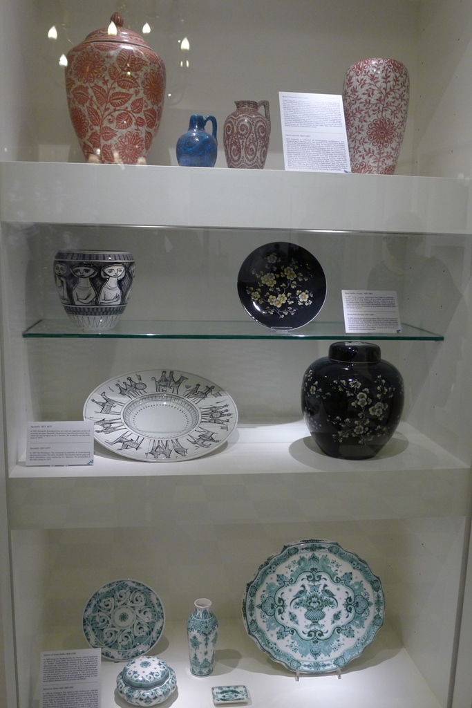 На витринах представлены работы, выполненные в самых разных стилях, техниках и цветах. Это объясняется тем, что они изготавливались на 32-х различных гончарных фабриках, некогда существовавших в Дельфте. Каждая фабрика имела свою «секретную формулу» синего цвета краски.
