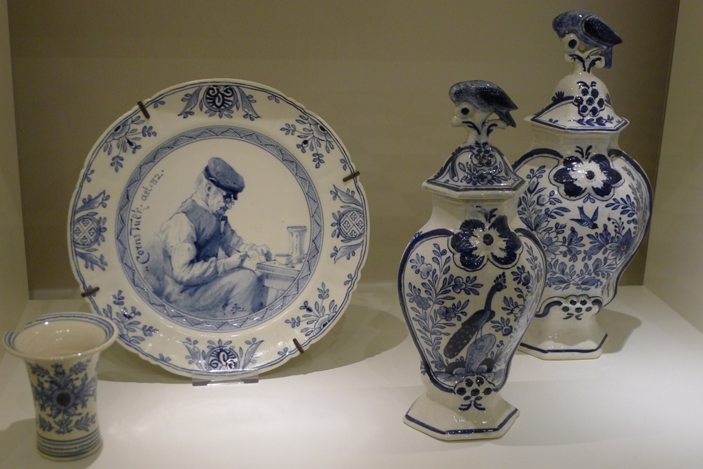 На витринах представлены работы, выполненные в самых разных стилях, техниках и цветах. Это объясняется тем, что они изготавливались на 32-х различных гончарных фабриках, некогда существовавших в Дельфте. Каждая фабрика имела свою «секретную формулу» синего цвета краски.