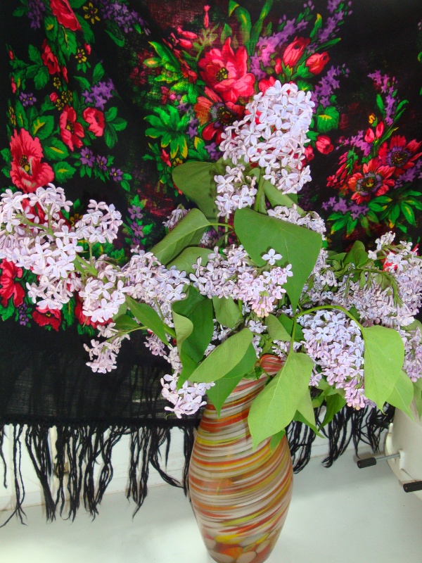 primavera, замечательное фото - Цветёт сирень с сиренью! Для меня этот платок особенный, с него всё и началось, а купила я его именно из-за этой сирени.
