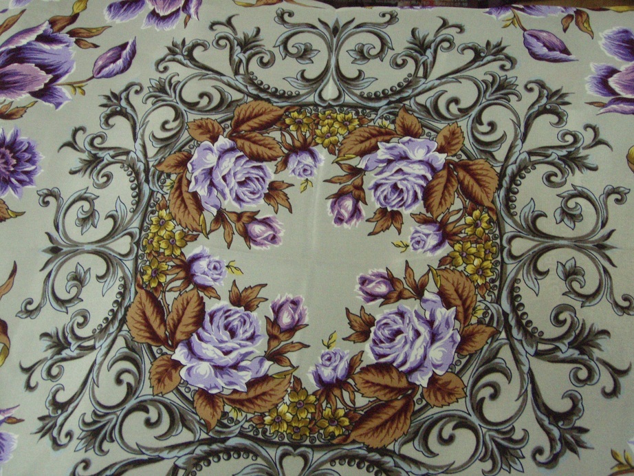 Новая шаль шёлковая шаль Е. Жуковой "Королевский бал". При детальном сравнении с "Ароматом любви", "Песней ветра" и шарфиком "Пламя свечи" прослеживаются аналогии и сходство фрагментов рисунка. Как, если бы "перемешали" рисунки с выше перечисленных шалей и шарфов и прибавили к ним немного рисунка с "Вальса тюльпанов" ::P Но, при этом шаль получилась красивая, очень контрастная.С равновесным цветовым решением (оттенки фиолетово-сиреневого+оттенки серого+оттенки коричневого). Красиво смотрится в одеждой серого цвета.