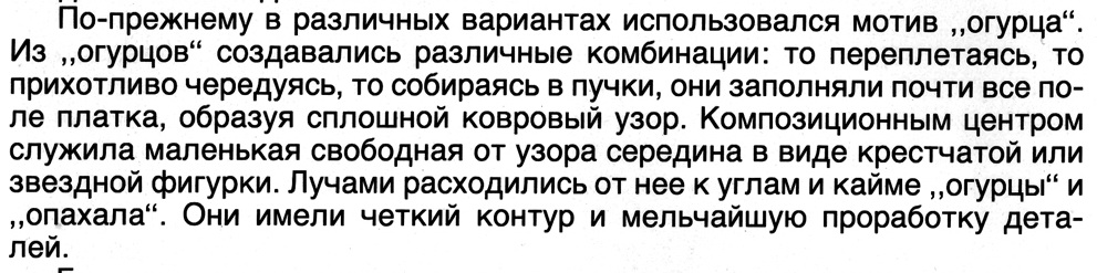 TaSy писал(а):На мой взгляд, угловые "огурцы" в Долине цветов компенсируют некую "скатертность", т.е. схожесть со скатертью, присущую шалям с подобным квадратным рисунком, и придают шали нарядность, "богатость"