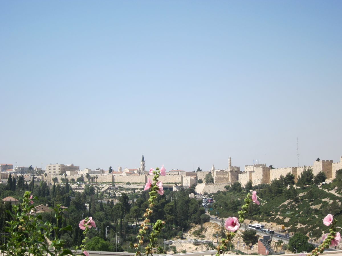 Вид Иерусалима с близлежащего холма. Город поразил меня своим цветом. Если Париж - светло-серый, то Иерусалим - весь светло-песочно-бежевый. Оказывается, все дома там построены из иерусалимского камня или облицованы им. На всех новостройках за этим строго следят, чтобы сохранялся исторический облик города