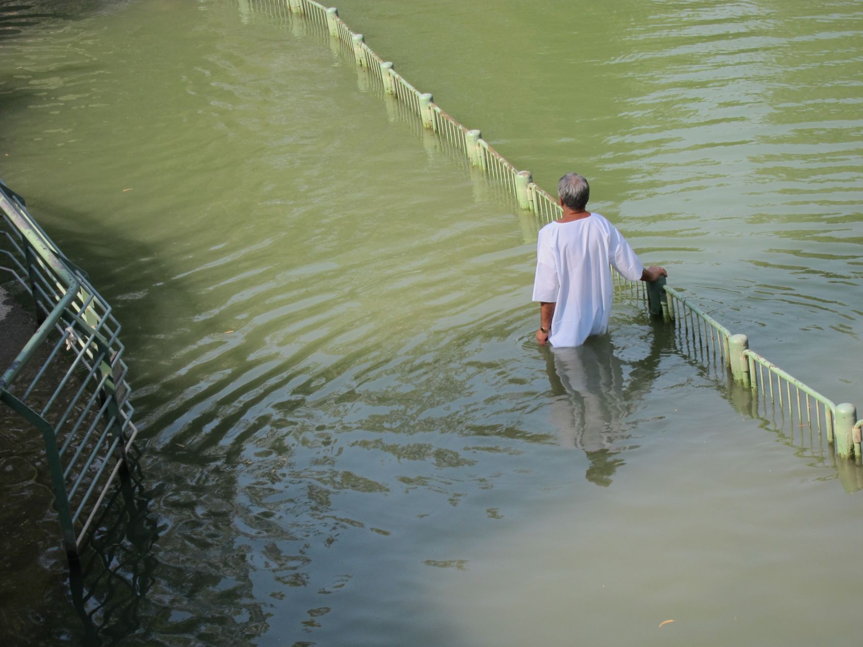 Река Иордан поразила своей малостью/неширокостью, зеленым цветом воды и чистотой. На фото паломники кормят местных водяных крыс и полчища сомов.