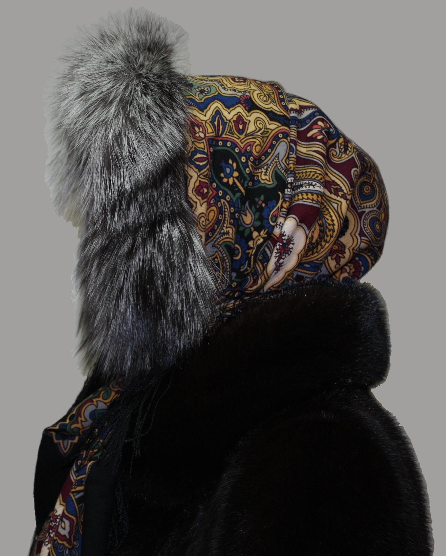 : даже уплотненной шали будет маловато, если ничем ее не утеплить. Мне этот вриант нравится больше, чем на шапку (шляпу) либо под нее. Но предвижу одну сложность: малую универсальность. Ведь приходится увязывать в единый комплекс шаль, шубу, опушку капора.Если будет возможность, покажите, как капор смотрится и с другими Вашими шалями. Мне кажется, очень хорошо должно выйти с чернофоновым Ожиданием (ну, насколько я представляю его). И еще красный мне видится. Но это все так, гипотезы.