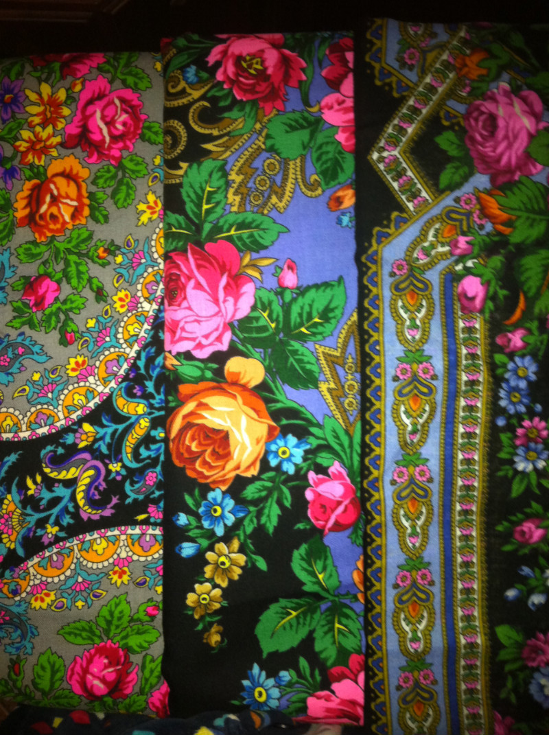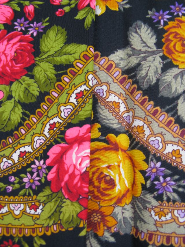 Sania... вот, как смогла, сравнила Павловские Розы и Летние Сумерки.... Качество - не очень, со вспышкой, но цветопередача верная... На Павловсих Розах цвета более спокойные, приглушенные по сравнению с буйством красочных родаминовых роз на Летних сумерках... Оба платка - красивы по своему, и они очень разные...