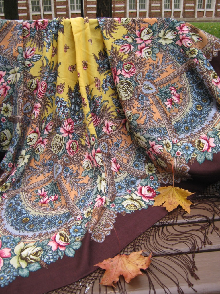 Vostorg, а ведь точно - осенняя шаль. ("Июньское утро") - желтая, как листья серединка и кайма, как спелые каштаны.